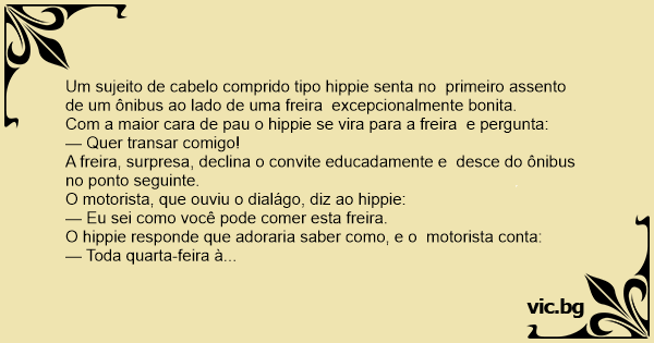 Com a maior cara de раu o hippie se vira para a freira e pergunta: