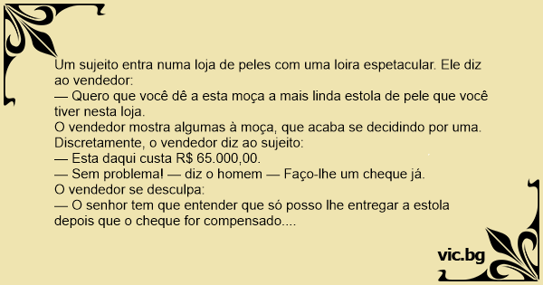 — Sem problema! — diz o homem — Faço-lhe um cheque já.