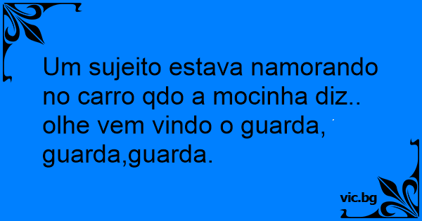 Um sujeito estava namorando no carro qdo a mocinha diz.. olhe vem vindo o guarda, guarda,guarda.