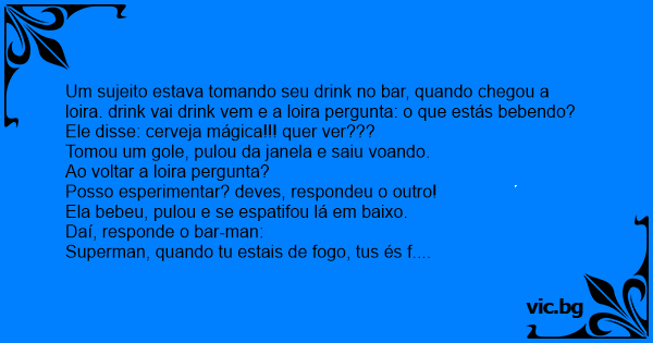 Um sujeito estava tomando seu drink no bar, quando chegou a loira. drink vai drink vem e a loira pergunta: o que estás bebendo?