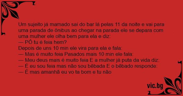 — É eu sou feia mas não sou bêbada E o bêbado responde: