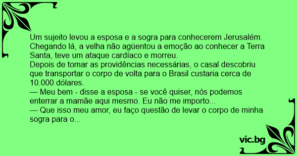 — Não! - respondeu o marido, decidido - Aqui em Jerusalém, eu não a enterro de jeito nenhum!