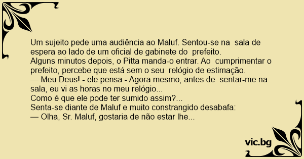 Um sujeito pede uma audiência ao Maluf. Sentou-se na sala de espera ao lado de um oficial de gabinete do prefeito.