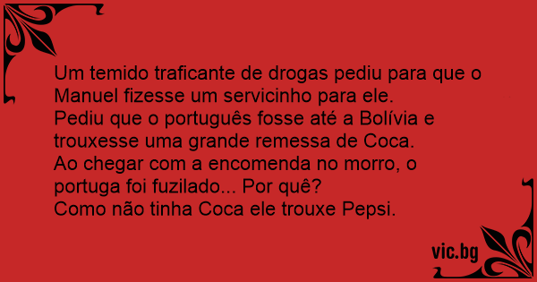 Pediu que o português fosse até a Bolívia e trouxesse uma grande remessa de Coca.