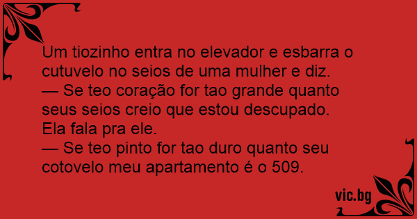 Um tiozinho entra no elevador e esbarra o cutuvelo no seios de uma mulher e diz.
