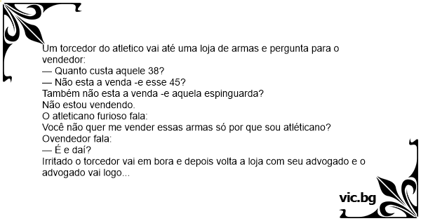 Um torcedor do atletico vai até uma loja de armas e pergunta para o vendedor: