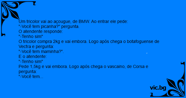 Um tricolor vai ao açougue, de BMW. Ao entrar ele pede: