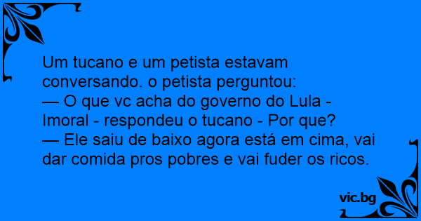 Um tucano e um petista estavam conversando. o petista perguntou: