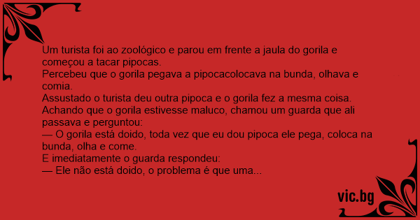 Achando que o gorila estivesse maluco, chamou um guarda que ali passava e perguntou: