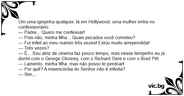 — Pois não, minha filha... Quais pecados você cometeu?