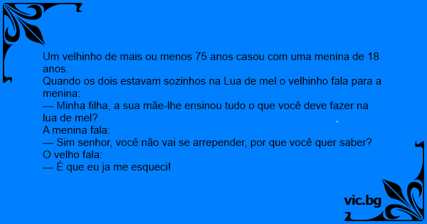 Quando os dois estavam sozinhos na Lua de mel o velhinho fala para a menina:
