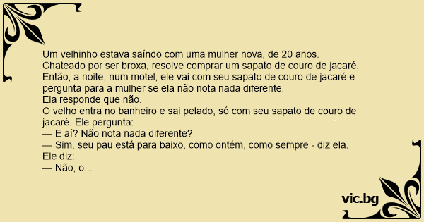 Chateado por ser broxa, resolve comprar um sapato de couro de jacaré.