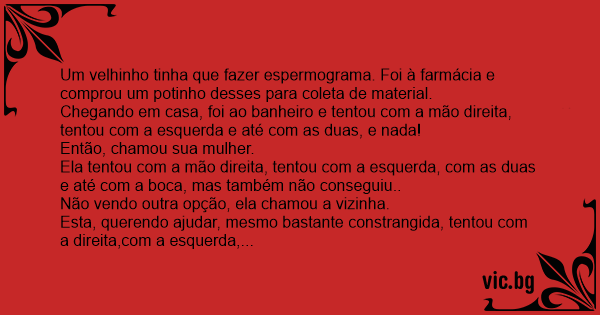 Um velhinho tinha que fazer espermograma. Foi à farmácia e comprou um potinho desses para coleta de material.