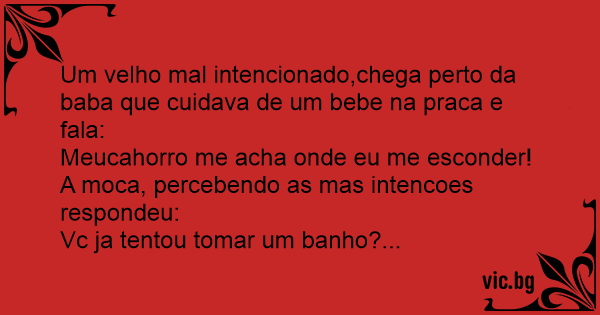 Um velho mal intencionado,chega perto da baba que cuidava de um bebe na praca e fala:
