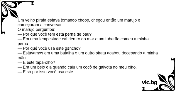 Um velho pirata estava tomando chopp, chegou então um marujo e começaram a conversar.