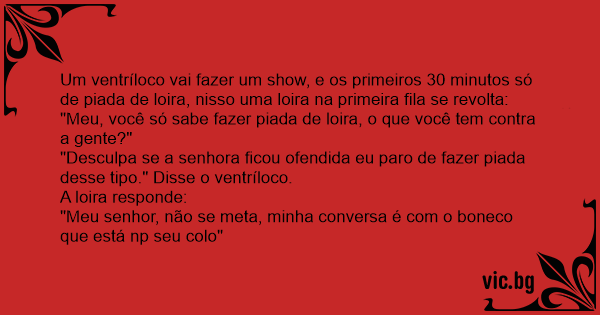 "Desculpa se a senhora ficou ofendida eu paro de fazer piada desse tipo." Disse o ventríloco.
