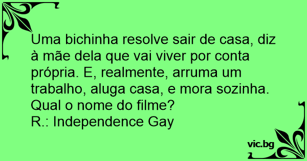 Uma bichinha resolve sair de casa, diz à mãe dela que vai viver por conta própria. E, realmente, arruma um trabalho, aluga casa, e mora sozinha.