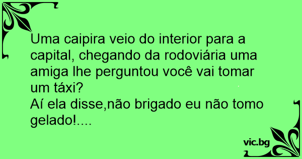 Uma caipira veio do interior para a capital, chegando da rodoviária uma amiga lhe perguntou você vai tomar um táxi?