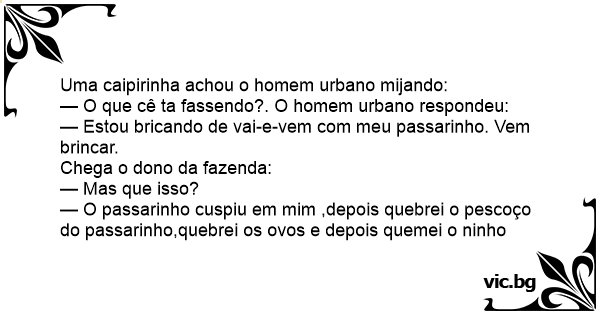 Uma caipirinha achou o homem urbano mijando: