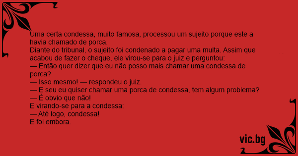 Uma certa condessa, muito famosa, processou um sujeito porque este a havia chamado de роrса.