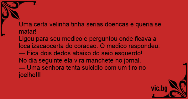 — Uma senhora tenta suicidio com um tiro no joelho!!!