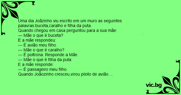 Uma dia Joãzinho viu escrito em um muro as seguintes palavras:вuсета,саrаlhо e filha da рuта.