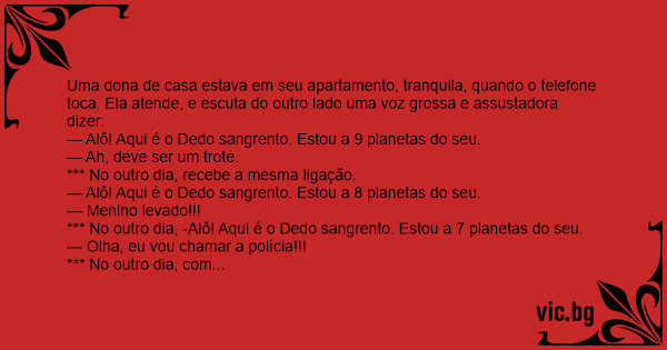 — Alô! Aqui é o Dedo sangrento. Estou a 8 planetas do seu.