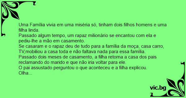 Uma Família vivia em uma miséria só, tinham dois filhos homens e uma filha linda.