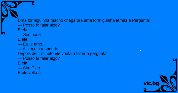 Uma formiguinha macho chega pra uma formiguinha fêmea e Pergunta: