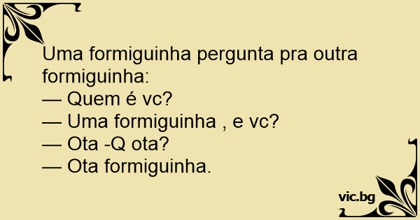 Uma formiguinha pergunta pra outra formiguinha:
