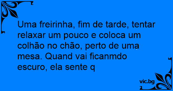 Uma freirinha, fim de tarde, tentar relaxar um pouco e coloca um colhão no chão, perto de uma mesa. Quand vai ficanmdo escuro, ela sente q