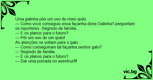 — Como voce conseguiu essa façanha dona Gаlinhа?-perguntam os reporteres -Segredo de família...