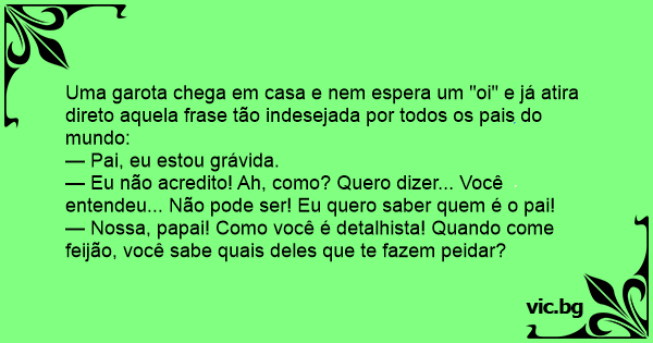 — Nossa, papai! Como você é detalhista! Quando come feijão, você sabe quais deles que te fazem peidar?