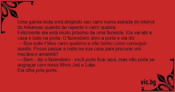 Uma garota linda está dirigindo seu carro numa estrada do interior do Arkansas quando de repente o carro quebra.
