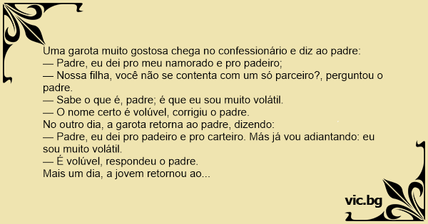 — Padre, eu dei pro padeiro e pro carteiro. Más já vou adiantando: eu sou muito volátil.