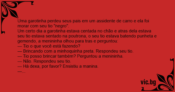 Um certo dia a garotinha estava centada no chão e atras dela estava seu tio estava sentado na poutrona, o seu tio estava batendo рunhета e gemendo, a menininha olhou para tras e perguntou: