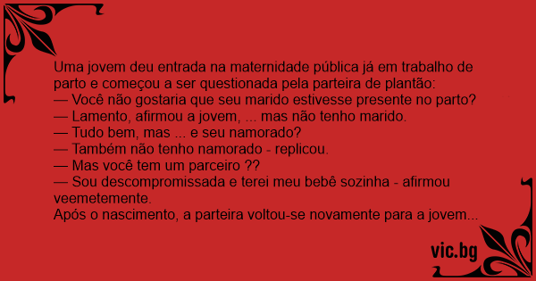 Uma jovem deu entrada na maternidade pública já em trabalho de parto e começou a ser questionada pela parteira de plantão: