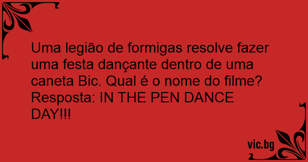 Uma legião de formigas resolve fazer uma festa dançante dentro de uma caneta Bic. Qual é o nome do filme?