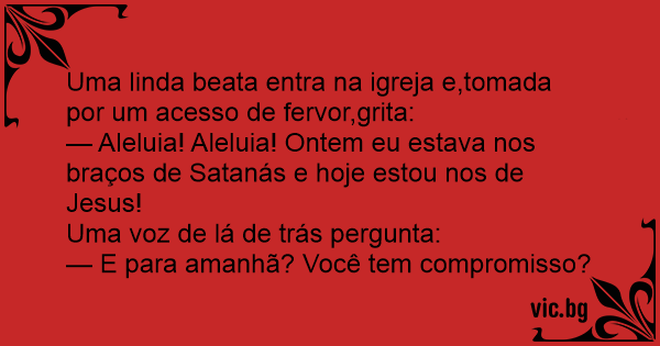Uma linda beata entra na igreja e,tomada por um acesso de fervor,grita: