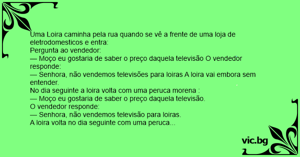 — Senhora, não vendemos televisões para loiras A loira vai embora sem entender.