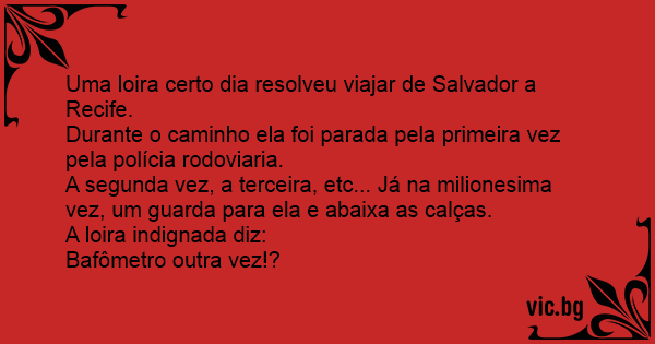 Uma loira certo dia resolveu viajar de Salvador a Recife.