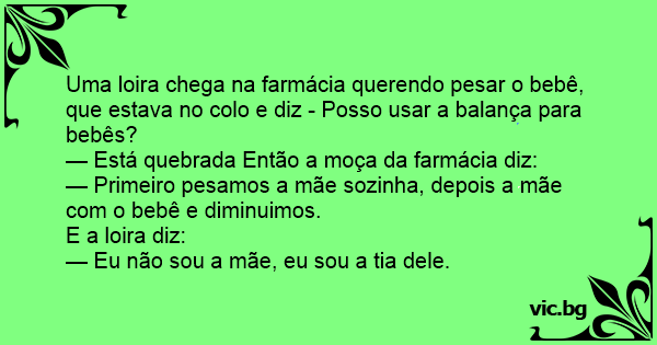 Uma loira chega na farmácia querendo pesar o bebê, que estava no colo e diz - Posso usar a balança para bebês?