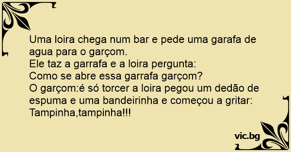 Uma loira chega num bar e pede uma garafa de agua para o garçom.