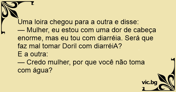— Mulher, eu estou com uma dor de cabeça enorme, mas eu tou com diarréia. Será que faz mal tomar Doril com diarréiA?
