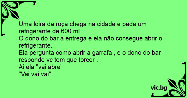 Ela pergunta como abrir a garrafa , e o dono do bar responde vc tem que torcer .