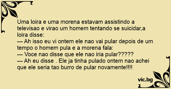 Uma loira e uma morena estavam assistindo a televisao e virao um homem tentando se suicidar,a loira disse: