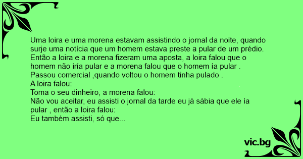 Uma loira e uma morena estavam assistindo o jornal da noite, quando surje uma notícia que um homem estava preste a pular de um prédio.
