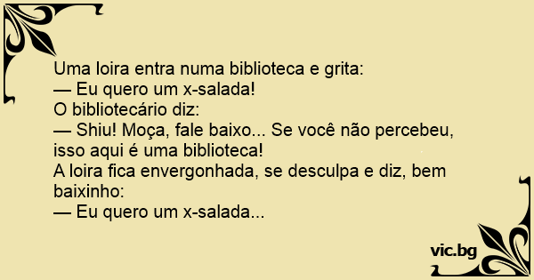 — Shiu! Moça, fale baixo... Se você não percebeu, isso aqui é uma biblioteca!