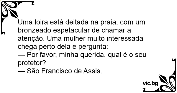Uma loira está deitada na praia, com um bronzeado espetacular de chamar a atenção. Uma mulher muito interessada chega perto dela e pergunta: