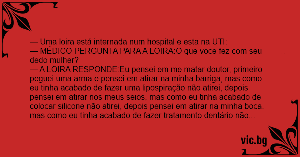 — Uma loira está internada num hospital e esta na UTI: